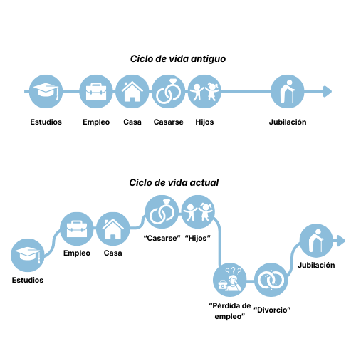 Antes, la vida seguía un ciclo previsible: estudios, trabajo estable, familia y jubilación. Hoy ya no es así. Accedemos más tarde al empleo, formamos familia más tarde y vivimos más transiciones laborales y personales. Nuestro ciclo de vida es menos lineal y más cambiante.