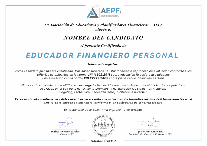 Nuestra certificación avala que los educadores y planificadores financieros trabajan con un estándar de calidad reconocido internacionalmente.